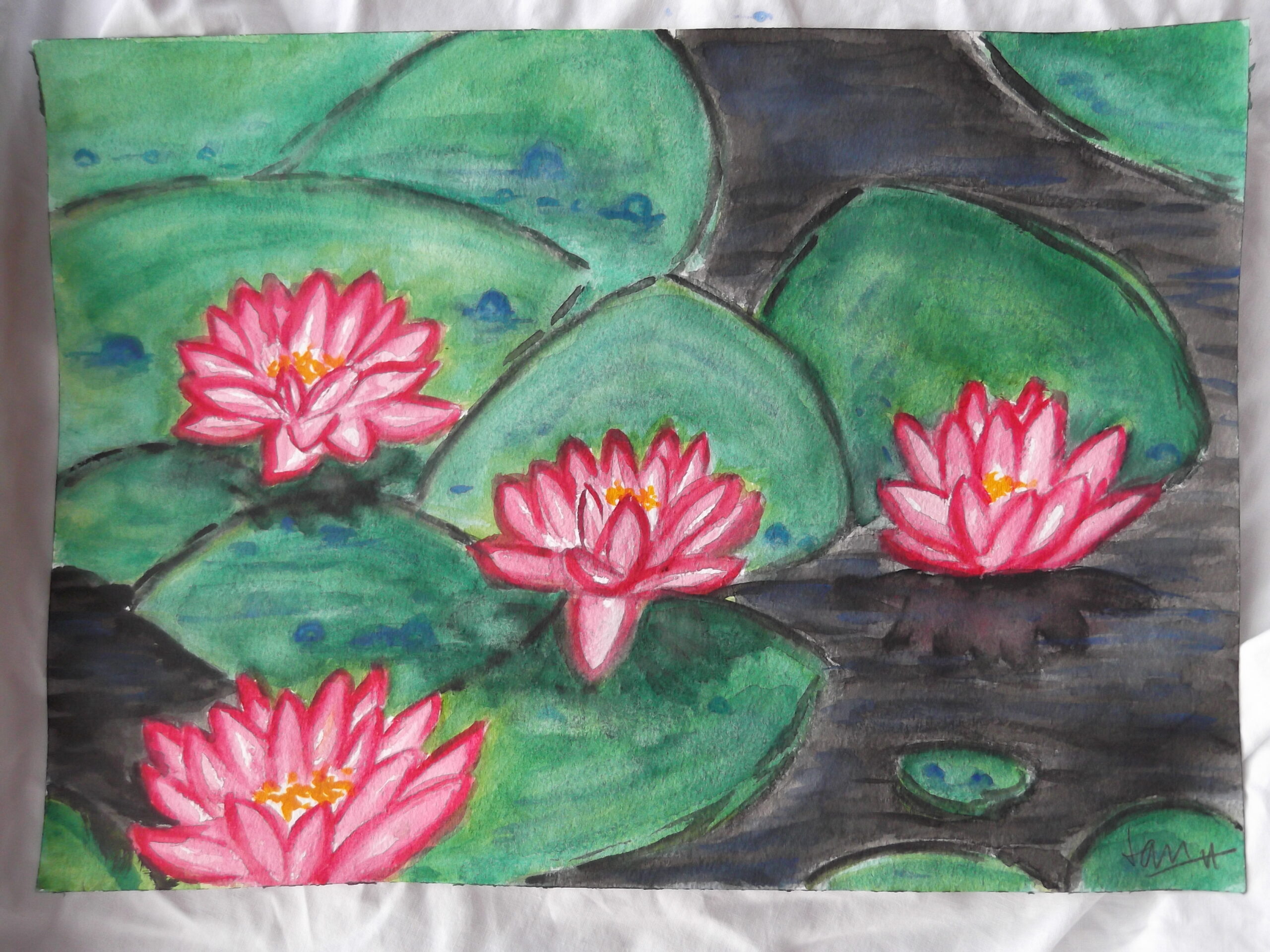 Cuadro Nenúfares rosa«Nenúfares rosa en el estanque», 36 x 26