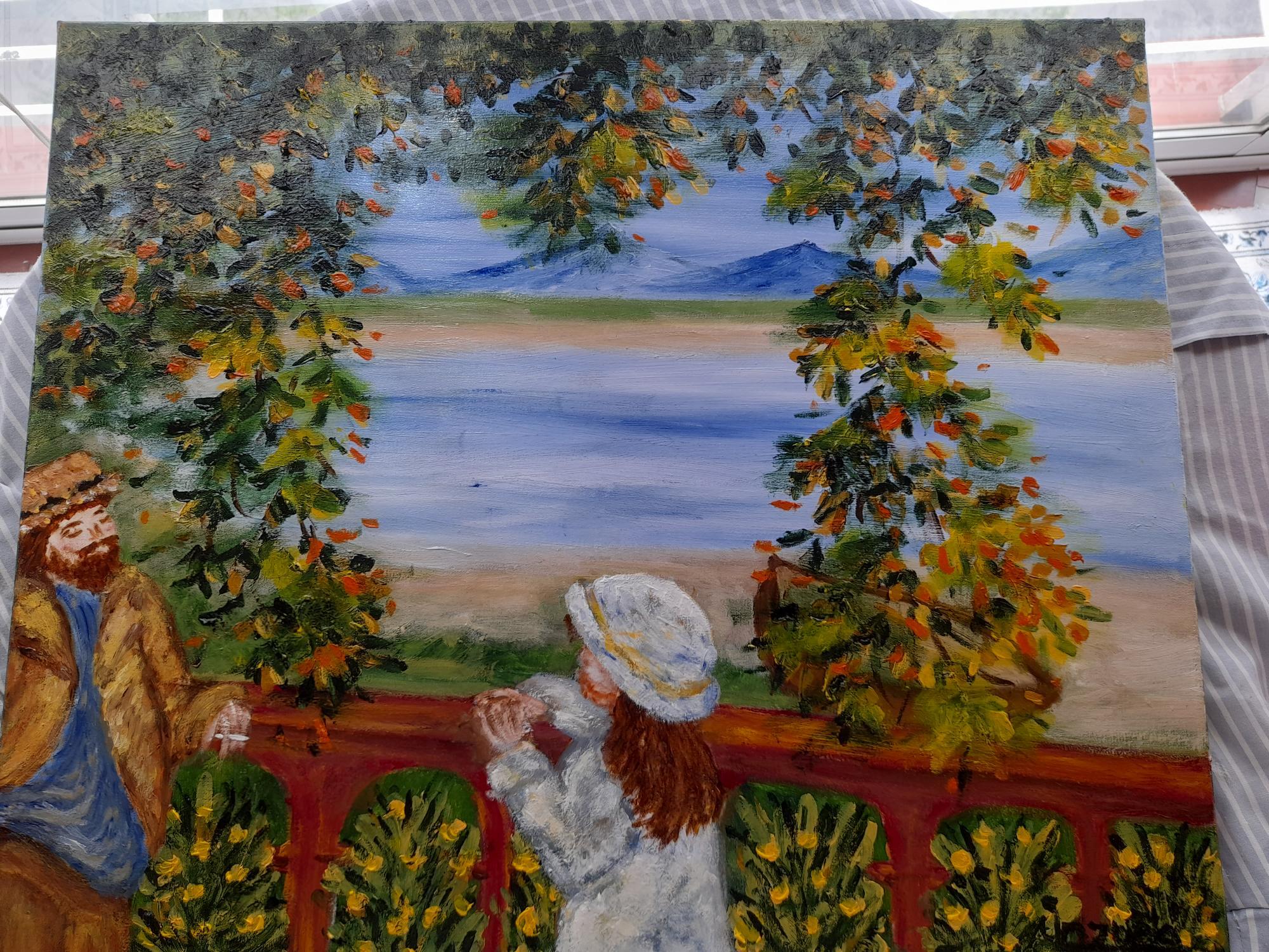 Esta versión de Sara Espinta de «Cerca del lago» de Renoir, esta realizada en óleo sobre lienzo. Hay más versiones de obras de grandes maestros disponibles en la web de Sara Espinta como «Niña recogiendo flores» de Renoir, o «Nevada en Argenteuil» de Monet. Una magnífica opción para comprar o regalar que se puede enmarcar a su gusto.